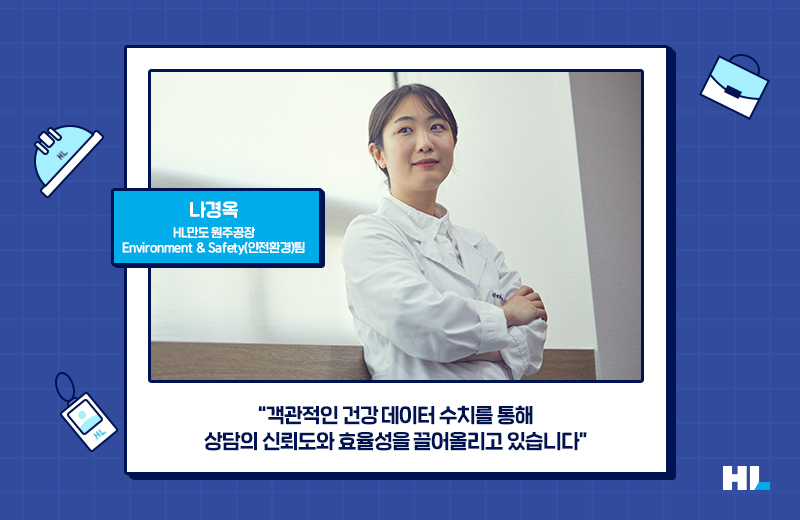 2019년부터 HL만도 원주공장 Environment & Safety(안전환경)팀에서 근무중인 나경옥 보건관리자는 뇌·심혈관질환 예방과 근골격계 질환 예방에 중점을 둔 건강증진 프로그램을 펼치고 있습니다. 이는 원주공장 구성원들의 특성을 반영한 것인데요. HL만도 원주공장에는 남성 근로자들이 많이 일하고 있으며, 이들의 평균 연령은 만 49세입니다. 남성 기준 만 45세 이상은 뇌·심혈관질환 위험요인으로 분류되기 때문에 다각적인 뇌·심혈관질환 예방 프로그램을 운영해 구성원들의 안전을 지키고자 한 것이죠.