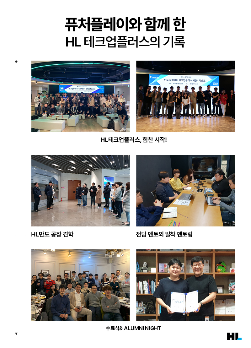 퓨처플레이는 HL과 함께 지난 2018년부터 HL 테크업플러스를 진행하고 있는데요. 그 시작은 HL만도의 제안이었다고 합니다. 급변하는 모빌리티 시장에서 새로운 기술을 선보일 스타트업이 필요하다고 생각한 HL만도가 퓨처플레이에 손을 내민 것인데요.
