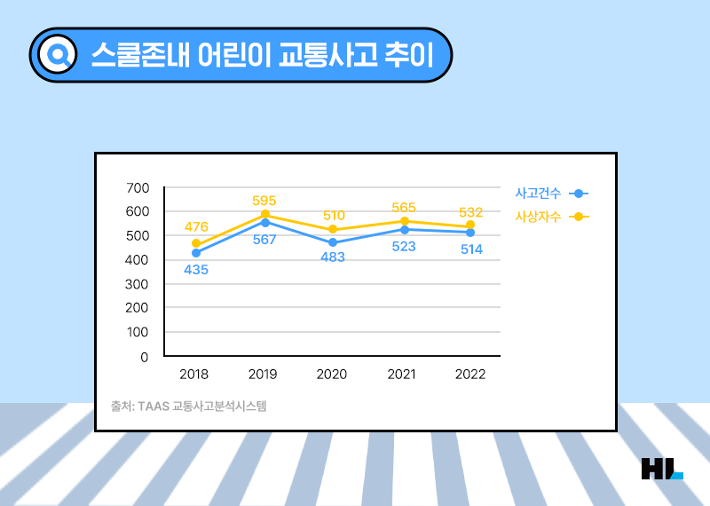 하지만 이렇게 엄격한 기준과 가중처벌 규정에도 불구하고 ‘민식이법이 실제로 효과가 있느냐’라는 의문이 지속적으로 제기되고 있습니다. 실제로 2020년 3월, 민식이법이 적용된 이후 2019년 567건이던 스쿨존 교통사고건수가 2020년에는 483건으로 감소했습니다. 하지만 2021년(523건)과 2022년(514건)에는 다시 500건 이상의 스쿨존 교통사고가 발생하고 있죠.