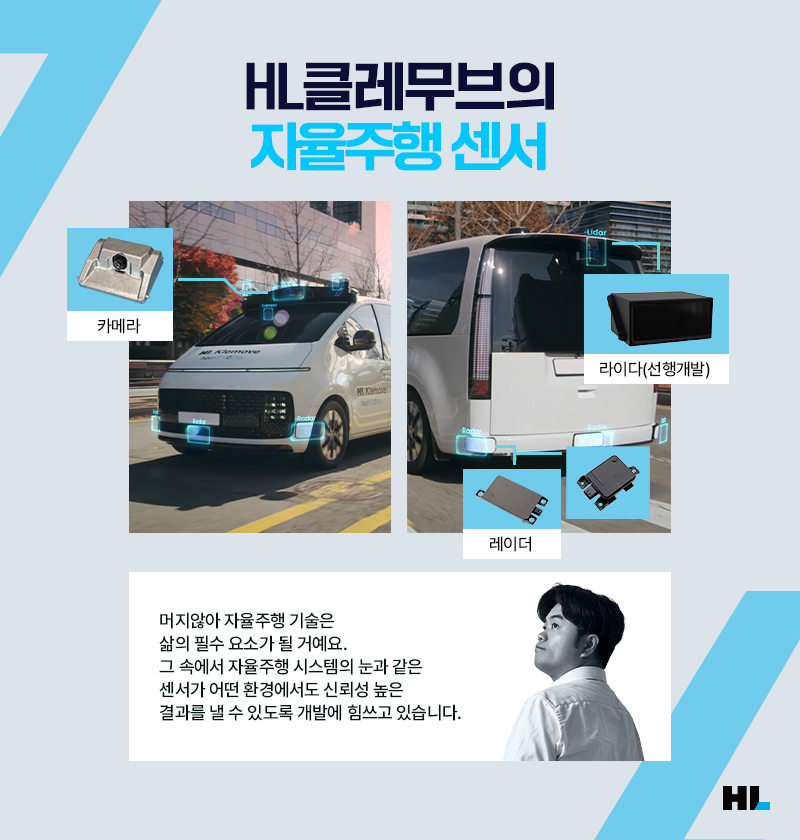 윤기: 최근 로봇 분야가 화두가 되고 있어요. HL클레무브는 보유한 센서 기술을 로봇 분야를 포함하여 자동차 외의 다른 산업에 접목하는 것을 검토하고 있으며, 특히 산업용 레이더 센서 및 라이다 센서를 개발하는 데 집중하고 있습니다.
