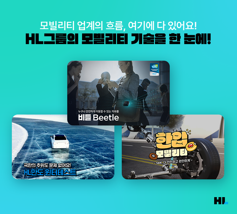 이 밖에도 HL그룹의 모빌리티 기술 7가지를 확인할 수 있는 기술 콘텐츠, 로봇 산업에 대한 인사이트를 얻을 수 있는 HL만도 MSTG의 리포트, HL그룹 TV 광고 캠페인에 얽힌 비하인드 등 흥미로운 기업 소식들도 HL Mobility Labs 독자 여러분의 많은 사랑을 받고 있는데요. 매달 초, 독자 여러분들에게 많은 사랑을 받았던 HL Mobility Labs의 소식을 요약하는 뉴스레터도 발행하고 있습니다.