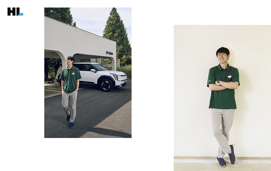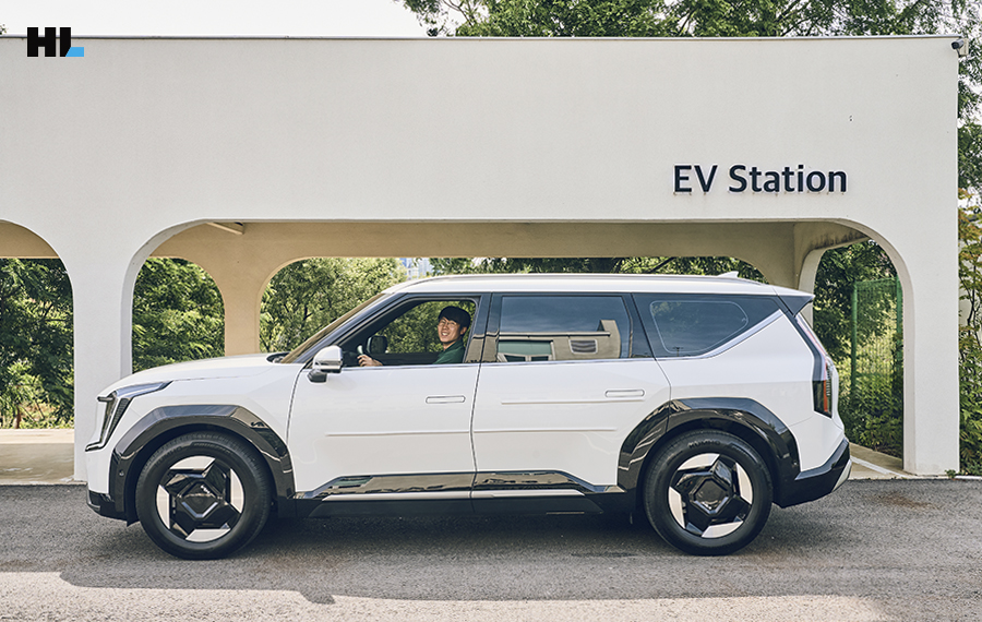 권구민 책임 매니저의 차량은 기아 EV9입니다. 국산 전기차 중에서 가장 큰 SUV로, 배터리 용량 역시 현존하는 전기차 중 가장 큰 99.8KWh을 자랑하죠. 덕분에 4륜 모델임에도 500Km 넘게 주행 가능합니다. 내부 못지않게 외관 역시 눈길을 끄는데요. ‘자연과 조화되는 대담함’이라는 주제로 설계된 만큼 대자연의 경이로운 아름다움과 간결하고 미래지향적인 디자인을 조화롭게 아우르고 있습니다.