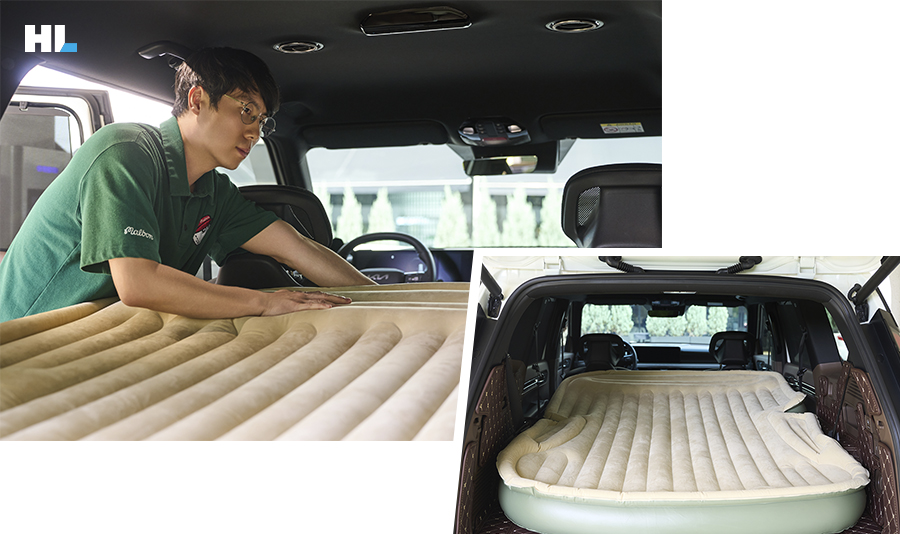 권구민 책임 매니저가 EV9을 점찍은 이유가 하나 더 있었는데요. 바로 EV9의 넓은 공간 때문입니다. 캠핑과 차박이 취미인 권구민 책임 매니저에게 넓은 EV9은 그야말로 제격이었죠. 실제로 차 내부에 에어매트를 깐 채 종종 차박을 즐긴다고 합니다.