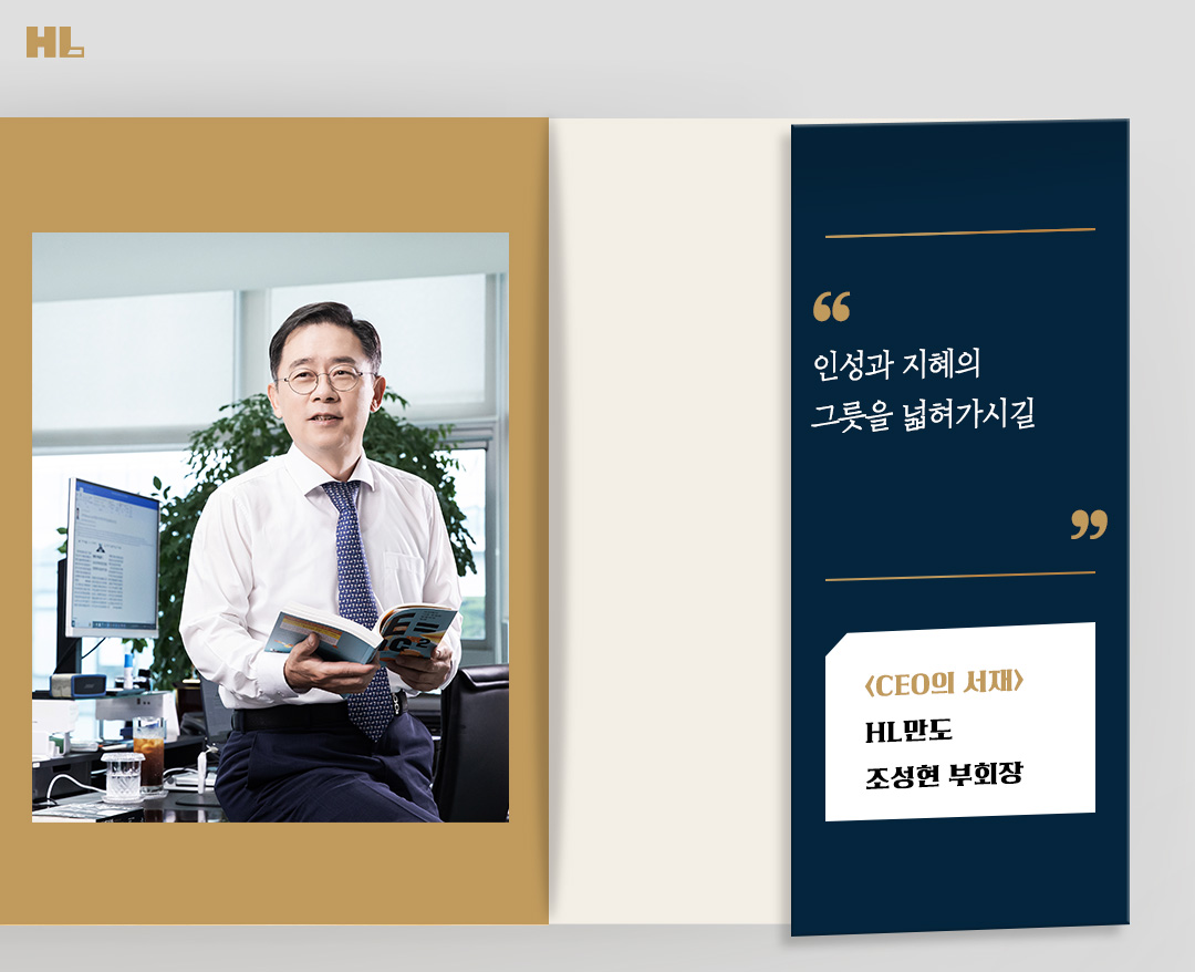 미지의 세계에 첫 발을 들이는 건 굉장히 어렵습니다. 익숙하지 않은 것들을 마주할 때마다 돌아가고 싶곤 하죠. 하지만 용기를 내 미지의 세계를 탐험하면 값진 보물을 얻을 수 있습니다. 오늘 <CEO의 서재>에서 그 용기를 얻어가세요. HL만도 조성현 부회장이 미지의 세계로 가는 길을 안내해 주실 테니까요.