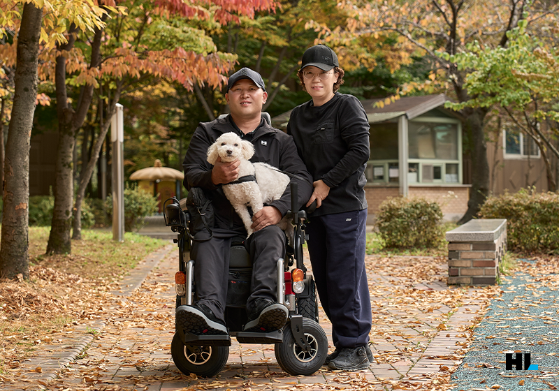 정영: 아파트 단지 내에 열리는 시장이요. 제가 시장의 활발한 분위기를 좋아하는데, 전동 휠체어로 가기가 딱 좋아요. 이전에는 차를 타고 가기에는 애매하고 일반 휠체어를 타자니 가는 길에 오르막도 있어서 잘 가지 못했는데, 전동 휠체어를 타니까 편하게 다녀올 수 있거든요. 또 짐 싣기도 편해서 좋더라고요. 한쪽 다리가 불편한 아내의 짐까지 제 휠체어에 싣고 집에 오면 되니까 지금은 거의 매주 시장이 열릴 때마다 장을 보러 가고 있어요. 아, 강아지 산책 시키기도 좋아요!