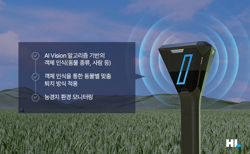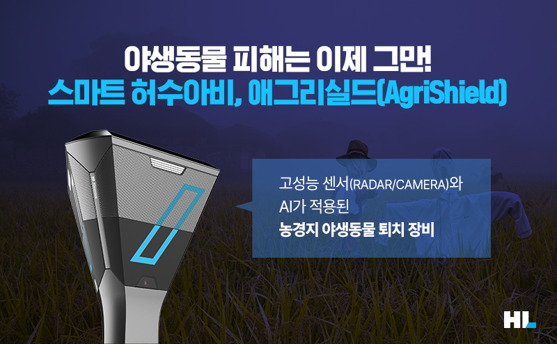 마지막 혁신상 수상 제품은 HL클레무브의 애그리실드(AgriShield)입니다. 애그리실드는 고성능 센서(레이더, 카메라)와 AI를 적용한 농경지 야생동물 퇴치 장비로 농경지에 접근하는 야생동물 객체를 인식해 빛, 소음, 음파 등 맞춤 퇴치를 진행합니다.