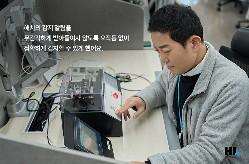 “화재 감지기 하면 무엇이 떠오르시나요? 잦은 오작동으로 경보음에 무감각한 사람들의 모습이 떠오르지 않나요? 그래서 해치를 개발하면서 오작동을 없애기 위해 성능에 가장 집중했습니다. 아크 현상을 연구하고 파장을 관찰해 특정 자외선만을 감지할 수 있는 고감도 기술을 구현하는 데 초점을 두고 개발했죠.”
