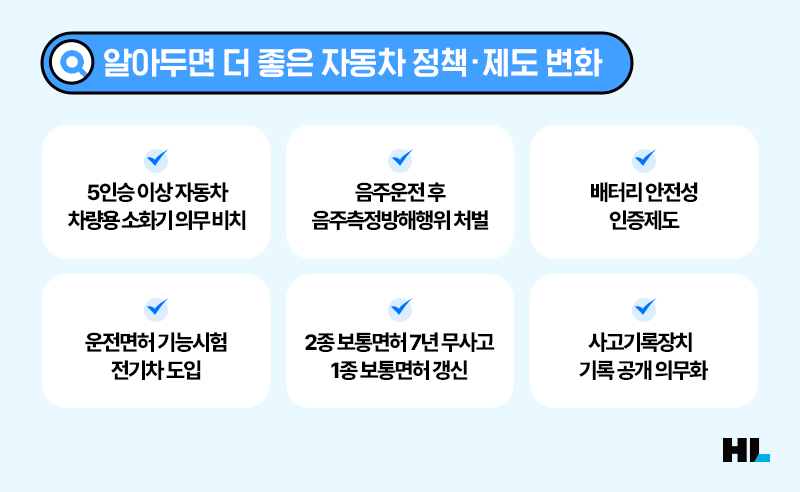 지금까지 더 알뜰하게 자동차를 타는 법을 알아보았다면, 이제는 몰라서 손해보는 일이 없도록 바뀐 제도들을 살펴볼까요?
