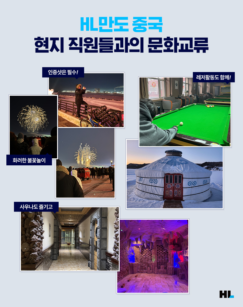 매일을 눈 속에서 일만 할 수는 없죠! 하루를 마무리한 윈터테스트 연구원들은 현지 HL만도 임직원들과 문화교류를 통해 견문을 넓히는 시간도 가졌는데요 이번 윈터테스트 기간에는 중국의 정월대보름 축제를 구경하는 등 즐거운 시간을 보냈다고 합니다.