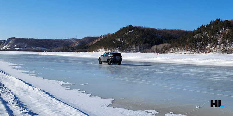 HL만도의 윈터테스트장이 위치한 중국의 흑하(헤이허시)는 춥기로 소문난 하얼빈보다 더 북쪽에 위치한 도시입니다. 얼음이나 눈 등 저마철로의 노면과 극저온에서의 부품 성능을 테스트하기에 최적의 환경이죠.