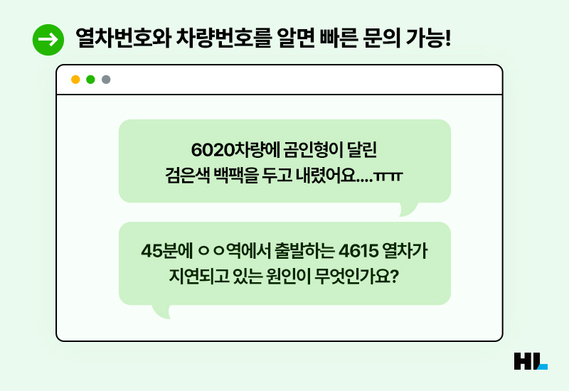 이렇게 열차번호나 차량번호를 알고 있다면 각종 문제를 해결하는 데 도움이 되는데요. 열차 내에 환자가 발생하는 등 긴급상황이 생겼을 때 차량번호를 작성해서 보내면 보다 빠른 민원처리가 가능하죠. 또 열차에 물건을 두고 내리는 등 분실물이 생겼을 때 내린 시간이나 출입문 번호, 차량 번호나 열차번호를 기억하고 있다면 열차 수배와 수색이 더욱 빠르게 이뤄질 수 있기 때문에 잃어버린 물건을 찾을 가능성이 높아집니다.
