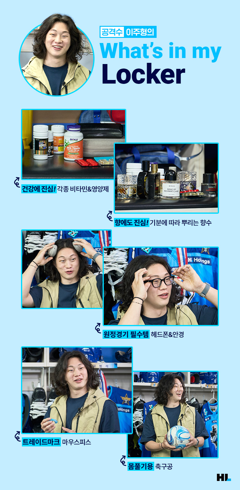 본격적인 오프시즌에 돌입하는 HL안양 선수단이 짐을 정리하기 전, HL Mobility Labs를 라커룸으로 초대했는데요. HL안양의 캡틴 안진휘 선수와 공격수 이주형 선수의 What’s in my locker! 궁금하신 분들은 따라오세요.