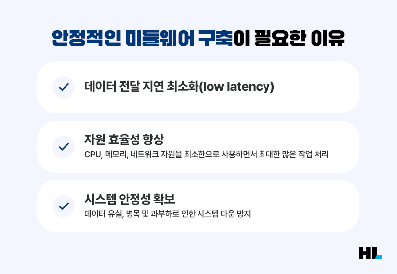 때문에 미들웨어를 안정적으로 구축하는 것이 매우 중요합니다. 차량 소프트웨어 시스템은 신뢰성, 실시간성, 보안성에 크게 영향을 받는데, 미들웨어의 구축이 불안정하다면 시스템 간의 충돌과 같은 여러 문제가 발생할 수 있고, 이는 차량의 주행 안정성은 물론 운전자의 안전과 운전 편의 등 여러 영역에 영향을 끼치게 됩니다. 특히 자율주행/ADAS 기능과 같이 수 밀리초(㎳) 단위의 실시간 응답이 요구되는 시스템에서는 단 1초의 지연이나 오류도 사고로 연결될 수 있다는 사실! 따라서 미들웨어를 최적화한다는 것은 곧 데이터 전달이 지연되는 것을 최소화하고 자원의 효율성 향상과 시스템 안정성까지 동시에 확보한다는 것입니다.