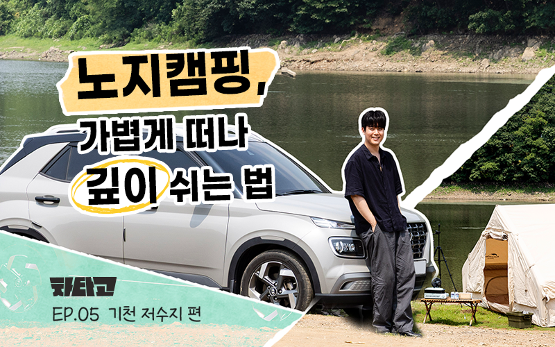 베뉴와 함께 떠난 이번 ‘차타GO’ 여행지는 화성에 있는 기천저수지입니다. 저수지 특성상 낚시를 즐기러 오는 분들이 많은 곳인데요. 하지만 낚시 외에도 유명한 것이 있었으니, 바로 노지 캠핑입니다. 물가 근처에 차를 댈 수 있어 마니아들 사이, 차박 혹은 노지 캠핑으로 유명한 곳이죠.