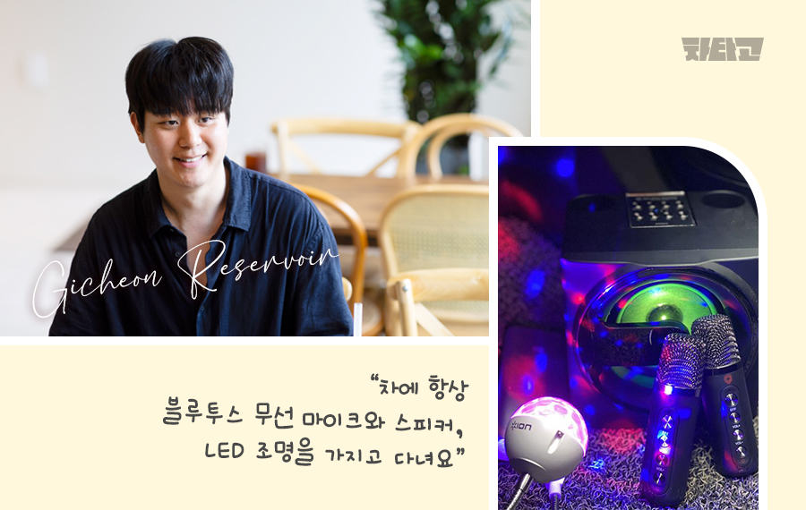 블루투스 무선 마이크와 스피커 그리고 LED 조명이요. 다들 아시다시피 차는 달리는 에어컨 또는 달리는 노래방이잖아요? (웃음). 제가 취업 준비하면서 3개월간 제주살이를 했었는데, 그때 친구와 함께 차에서 조명 켜고 노래 부르면서 놀았던 추억이 너무 좋았어요. 그때도 베뉴를 제주도에 가지고 갔거든요. 아직도 차에 꼭 가지고 다니는 필수템이 됐습니다.