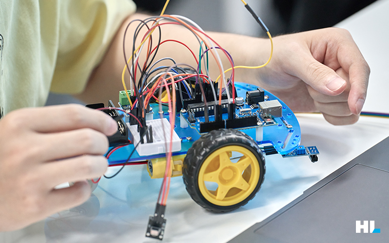 전날 배운 내용을 토대로 각자의 라인트레이서 플랫폼을 조립하는 클래스메이트들! 어려움을 맞닥뜨릴 땐 주변 친구들과 강사님의 도움을 받으며 차근차근 라인트레이서를 완성했습니다.