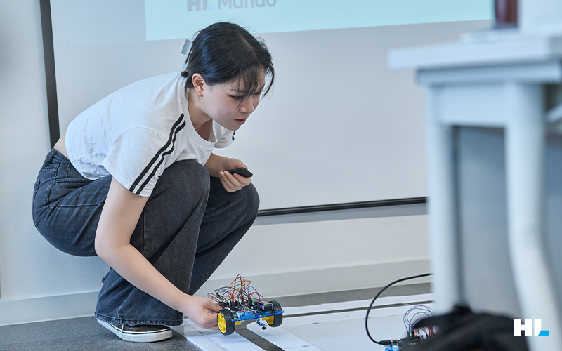 라인트레이서 실습 수업은 HL만도 SW Campus 조평권 책임연구원이 강사로 참여했는데요. 조 책임연구원은 HL만도에서도 업무 노하우를 공유하는 사내강사로 활동 중이기도 합니다. 동료들과 지식을 공유하는 것을 넘어 미래의 후배를 직접 육성하기 위해 나선 조평권 책임연구원과도 짧게 이야기를 나누었습니다.