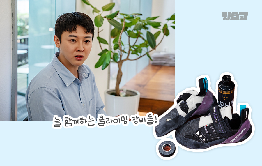 맞아요. 실내 클라이밍 장을 여러 군데 바꿔가면서 다니고 있어서 클라이밍 장비를 항상 차에 두곤 합니다. 미끄러지지 않게 하기 위한 초크랑 손에 하는 테이핑, 그리고 클라이밍 신발 정도예요. 특히 클라이밍 하시는 분들이 자주 하는 말이 있는데 "신력이 실력이다"라는 말이에요. 그만큼 신발의 영향이 매우 큽니다.