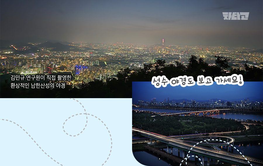 제가 야경 보는 걸 좋아하거든요. '차타GO'에 출연해 주신 분들께서 좋은 드라이빙 코스를 많이 소개해 주셨으니, 저는 예쁜 야경 스팟을 소개해 드리고 싶었어요. 야경 명소로는 남한산성이 최고인 것 같습니다.