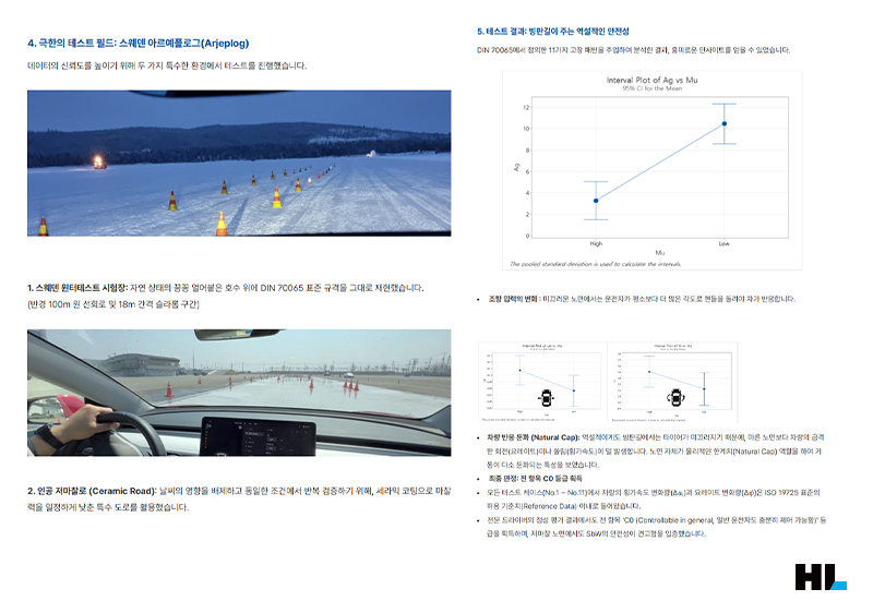 태윤: 저는 회사의 선행 개발 담당 부서에서 일하고 있어요. 신기술과 트렌드를 온몸으로 체감하고 있는 만큼 신기술 개발에 대한 다양한 이야기를 들려드릴 수 있을 것 같습니다. 매년 겨울, 연구원들이 영하의 추위 속 스웨덴 북부와 러시아 국경을 누비며 노력한 BY-WIRE 샤시 시스템 개발 과정에서 얻은 최신 기술적 성과도 소개할 수 있을 것 같네요.