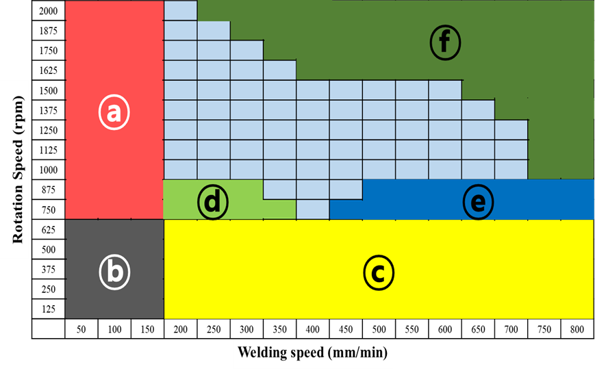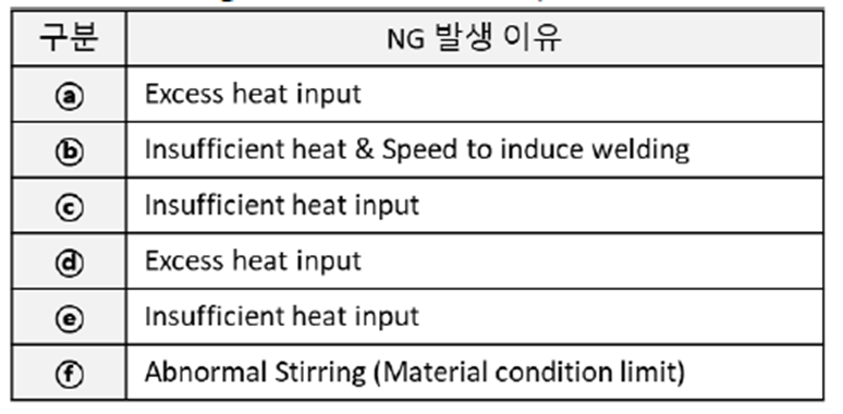 • 영역 ⓑ, ⓒ, ⓔ (입열량 부족, Insufficient heat): RPM이 낮거나, Feed Speed가 너무 빠를 경우 재료를 충분히 부드럽게